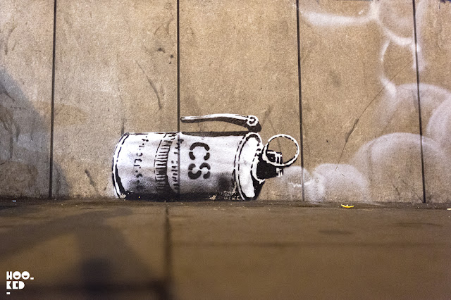 Banksy Street Art work highlights teargas use in Calais refugee camp